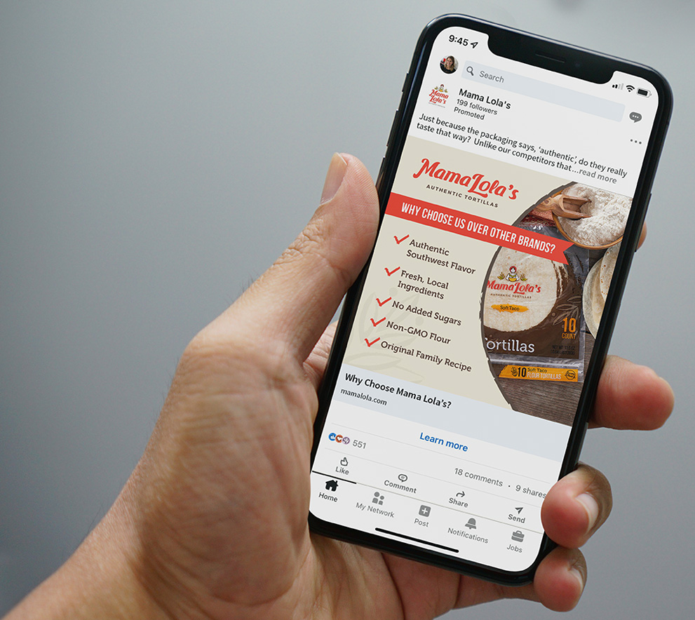 Mama Lola’s specializes in making and distributing authentic, all-natural tortillas and other Mexican food products throughout the Phoenix, AZ area. They came to us in need of a full brand revitalization to give them a fresh look and better meet the needs of their growing customer base. After establishing their new branding, we applied it throughout various consumer touch points to create a consistent and cohesive presence. As the brand began to shift focus from foodservice to retail, we developed an actionable social marketing strategy to bring awareness to target consumers throughout the southwest and drive retail sales.