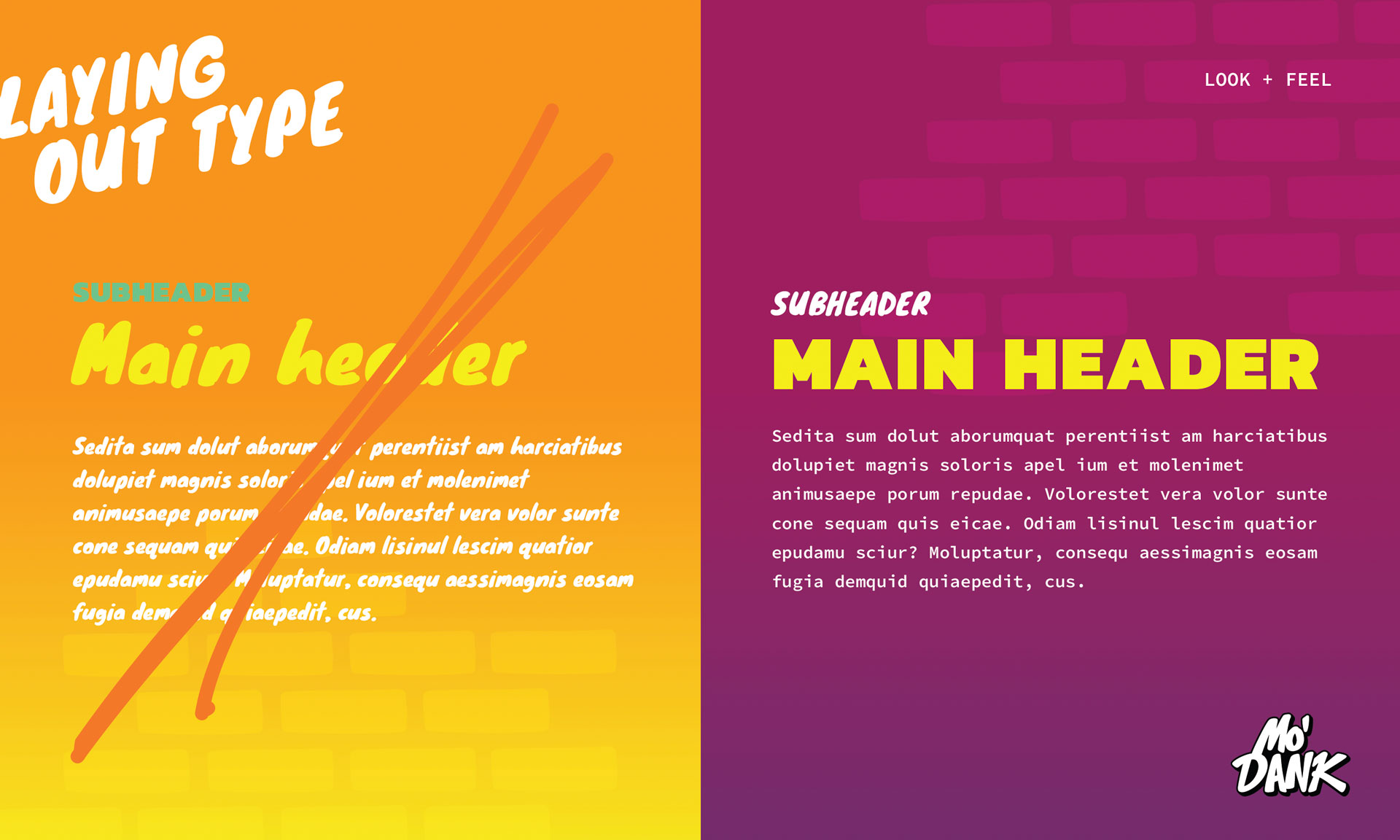 With this in mind, we used clear and concise language to establish brand positioning, promise, manifesto, and core messaging. We strategically created a vibrant color palette to match their personality and help distinguish between their strain types. A graffiti-style typeface was contrasted with one that’s clean and bold—mixing 90’s grunge with a professional twist. We created own-able design elements such as a subtle brick texture and a scribble. We also utilized angled text that overlaps and spills outside of images to create a sense of depth. Finally, we pulled everything into a cohesive brand book.