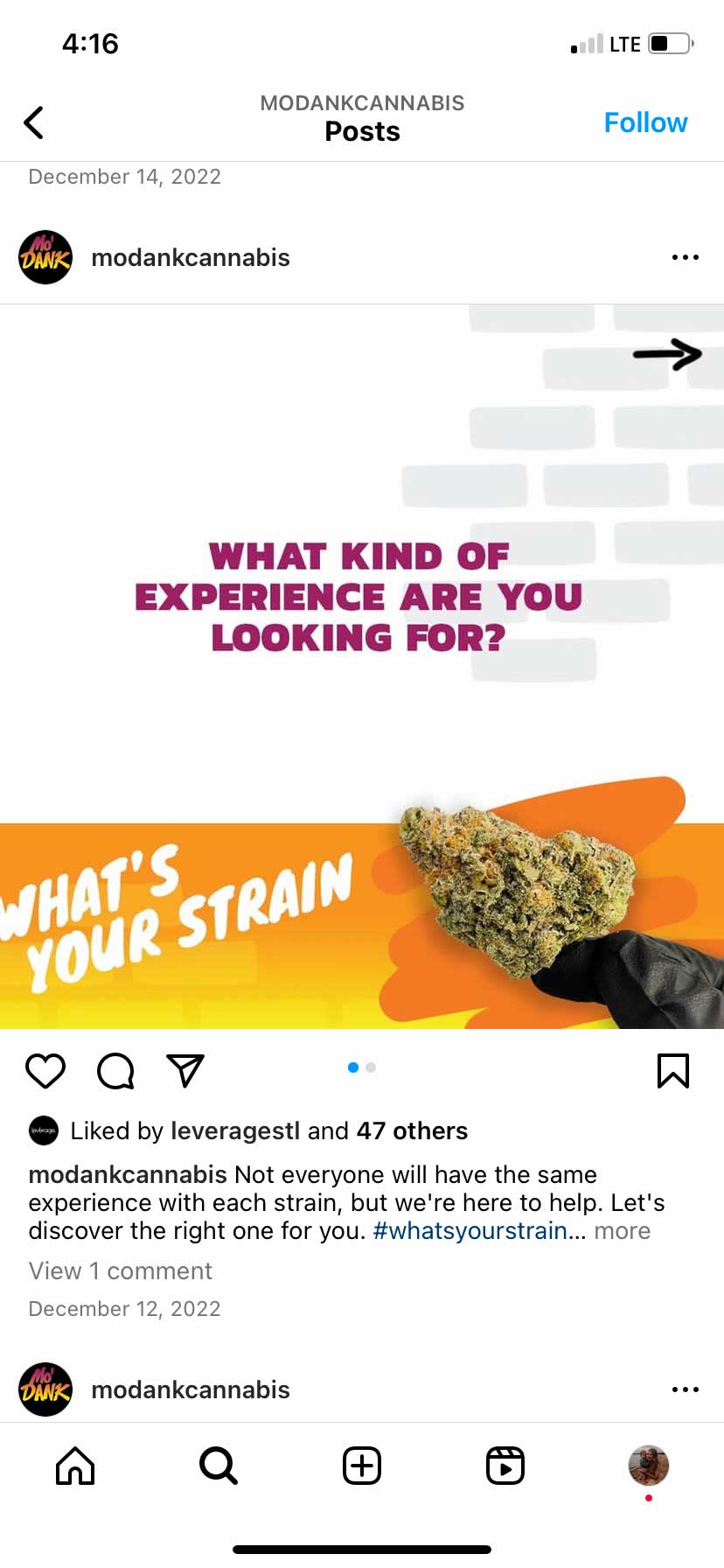 Similar to most brands, a big piece of Mo’ Dank’s marketing strategy is focused on social media. We partnered with them to develop a full social strategy with Instagram and Twitter as the primary channels. After conducting market and competitor research, we identified their core pillars that all of their content would relate to. We created a content calendar each month with post dates, captions, hashtags and creative direction, and provided them with easy-to-use templates that allows their creative to stay consistent and enables turnkey post execution.